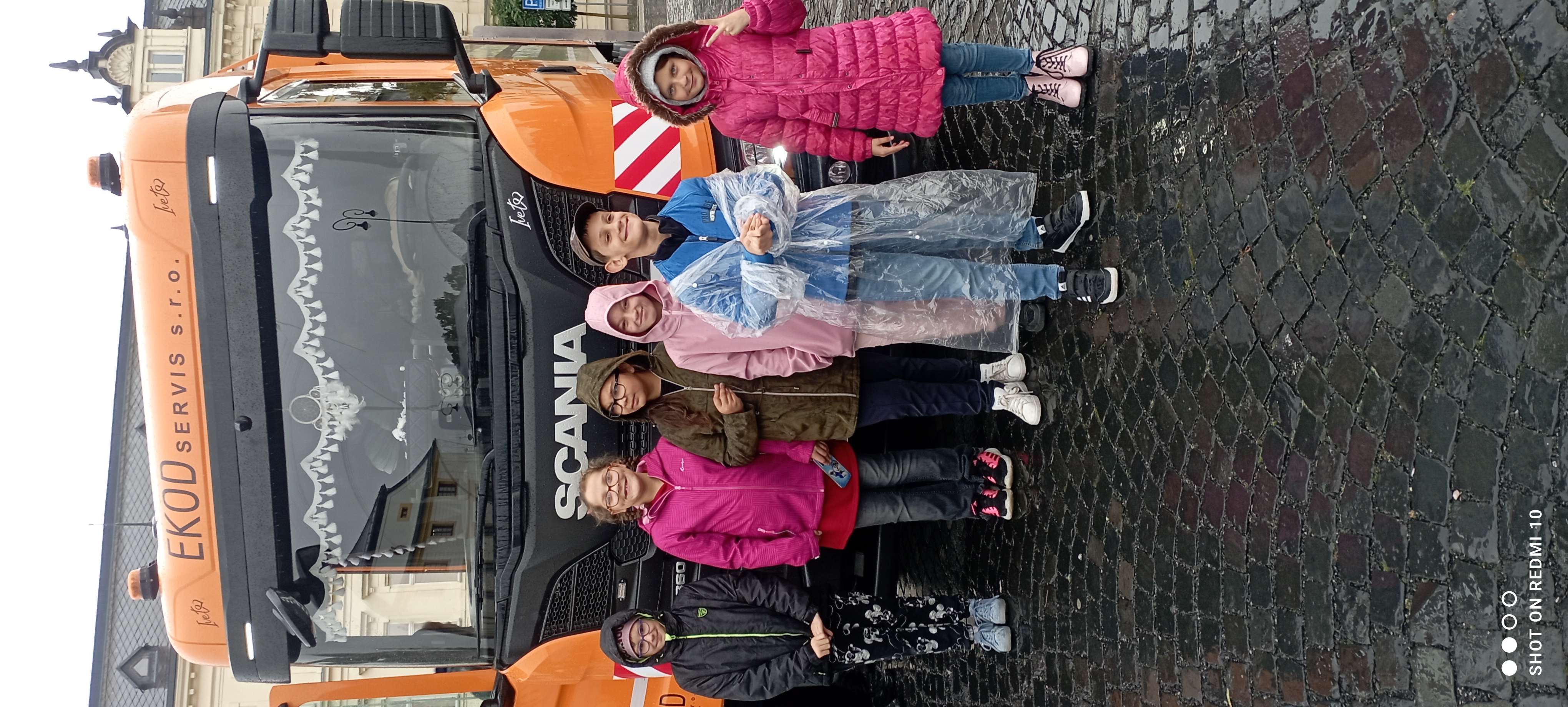 Na náměstí Míru strávily děti z prvního stupně jen chvilku, pršelo a foukal vítr. Všechny zaujala motokára postavená ze staré popelnice. Do školy jsme si přinesli zajímavé pracovní listy o třídění...